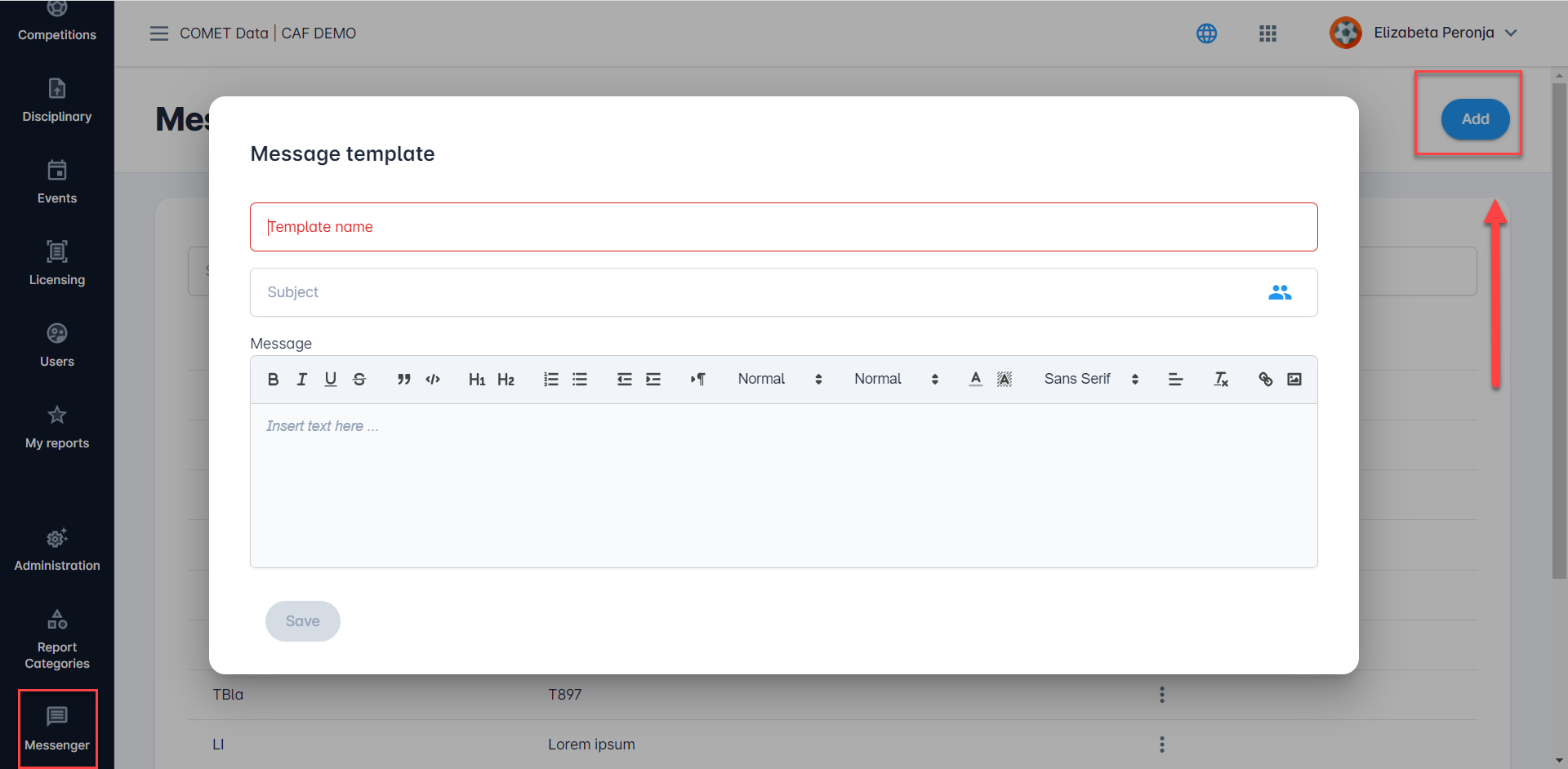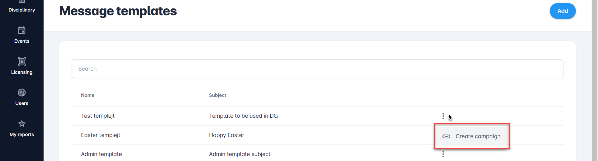 Hit the Add button at the top right corner to create a new Message template