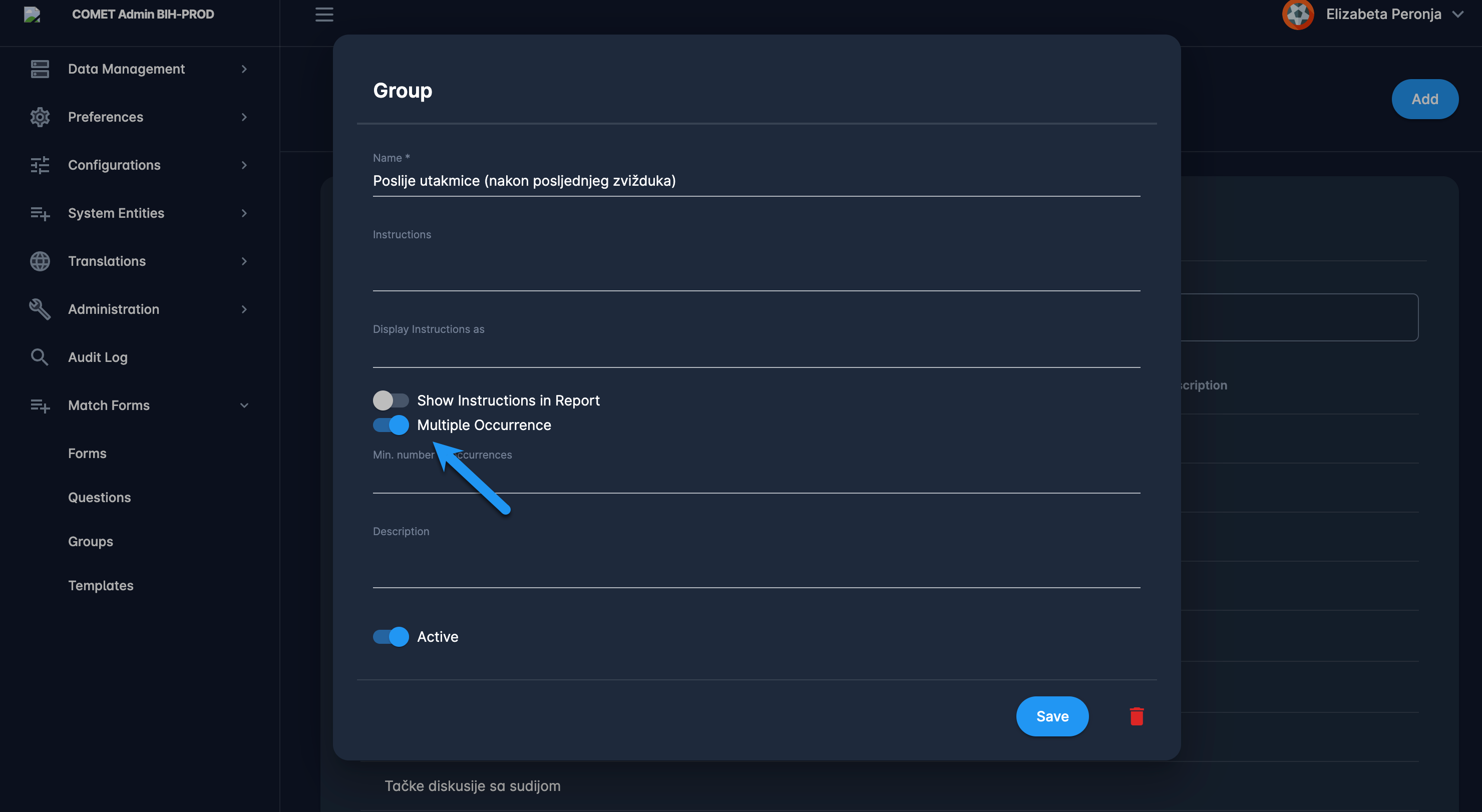 COMET Superusers are able to define Groups as the ones that have “Multiple Occurrence”.