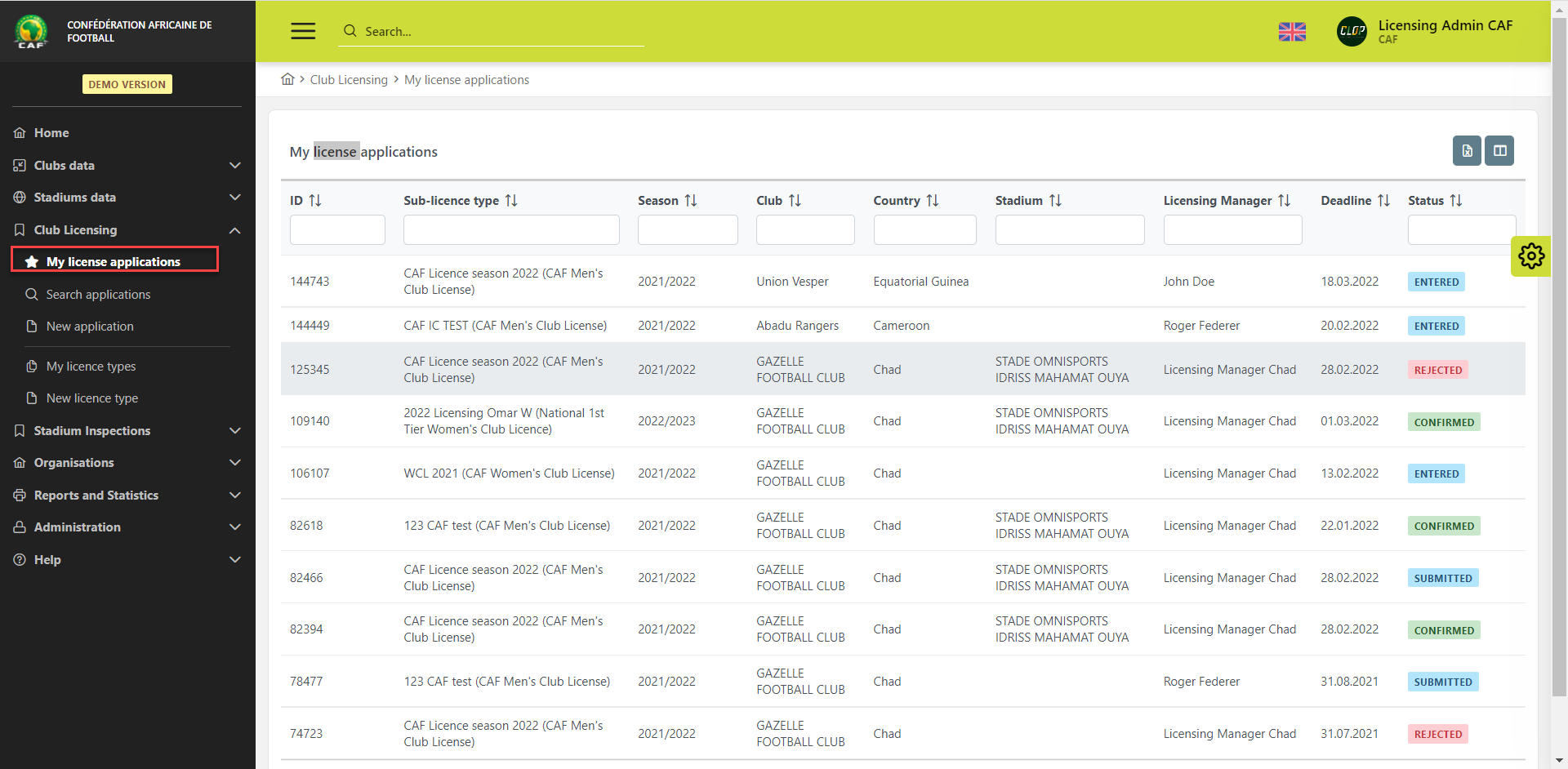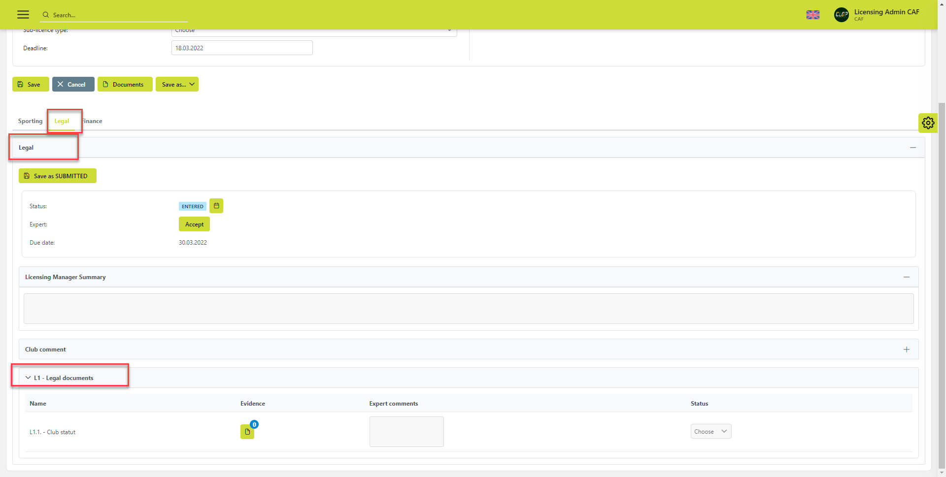 Licensing Club Responsible/ Applicant Club in COMET is responsible for administrating Applications (e.g. answer all the questions and submitting categories)