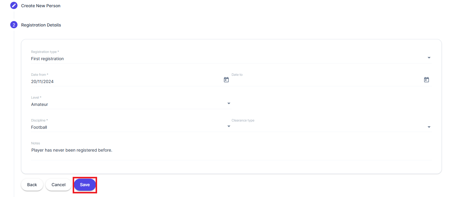 The Registration Wizard simplifies the process of registering players, coaches, or staff by guiding users through a series of steps. Each step ensures that the necessary details are entered accurately and in compliance with the system's requirements.