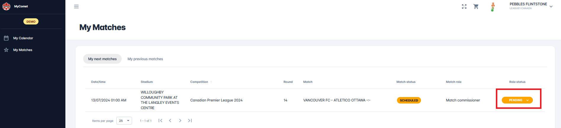 Nevertheless, the Match Officials can update the match appointment status from CONFIRMED to REJECTED (or even back to PENDING) and the administrators will be notified immediately about that update. They can do it in the same way as they confirm the appointment: