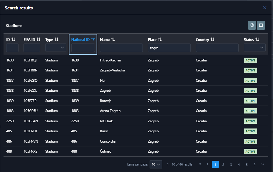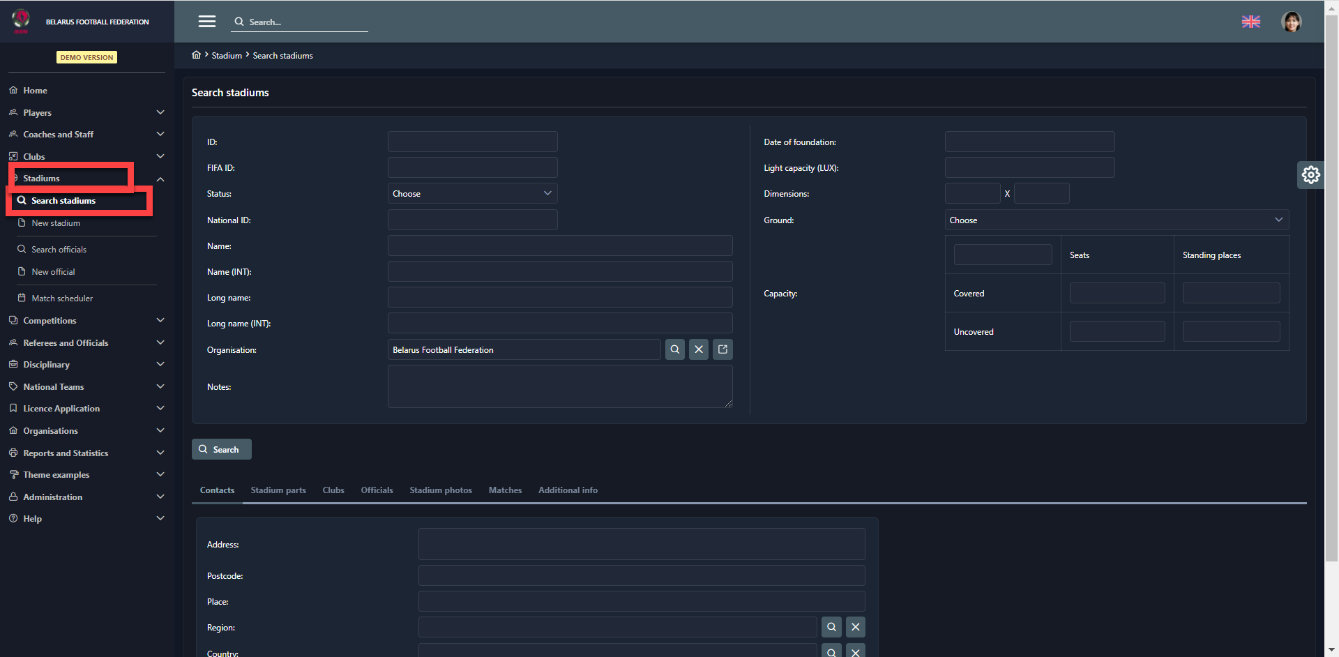 Select Stadiums> 🔎 Search stadiums on the left nav-bar