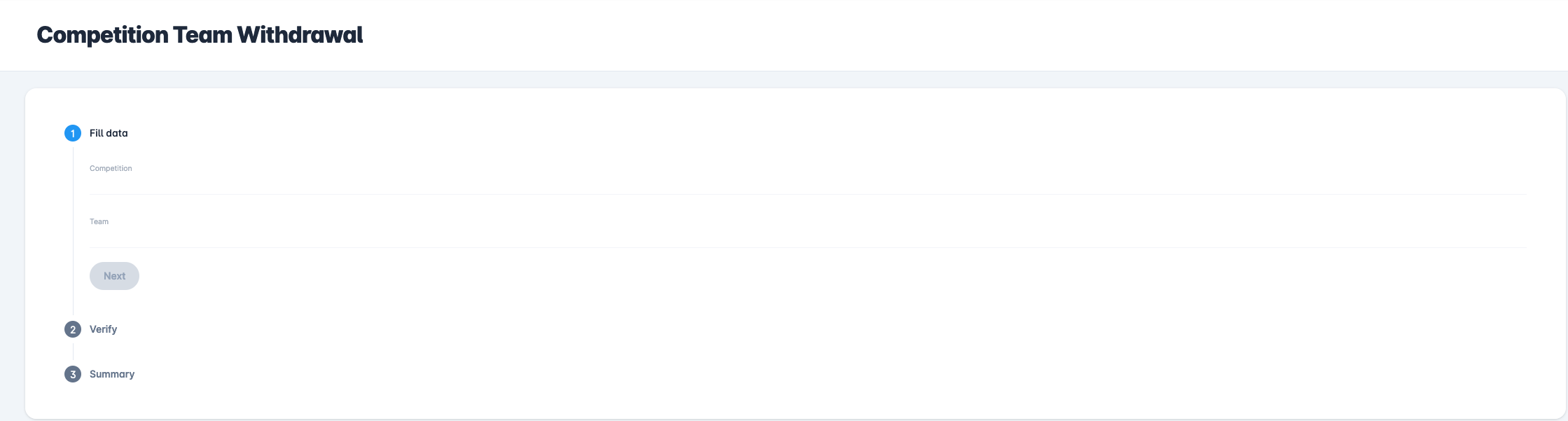 Clicking on this menu item opens a 3-step wizard for withdrawing a team from a competition.