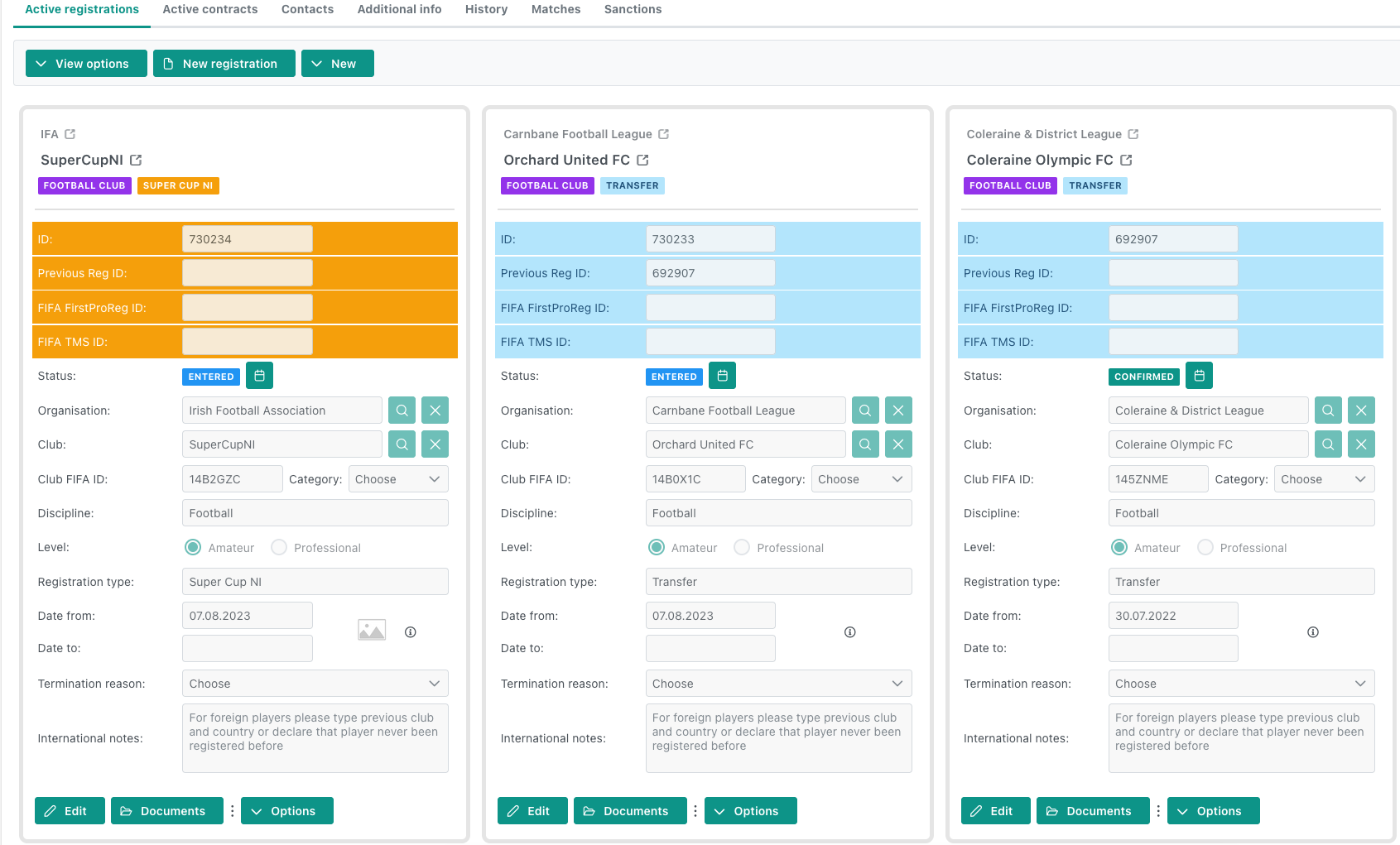 Additionally, a player can have more unofficial registrations in the same discipline; there are no constraints, unlike official registrations, which are subject to FIFA RSTP. Also, unofficial registrations do not generate transfer requests or notifications.