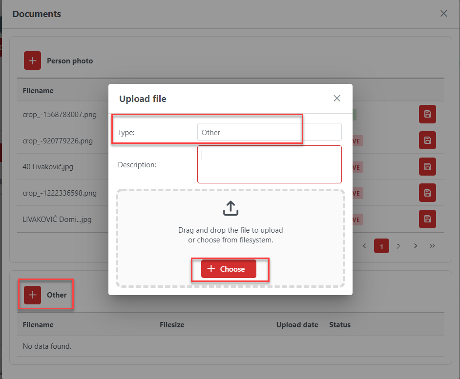 Some document types are predefined and the rest can be uploaded as “Other” (see figure below).