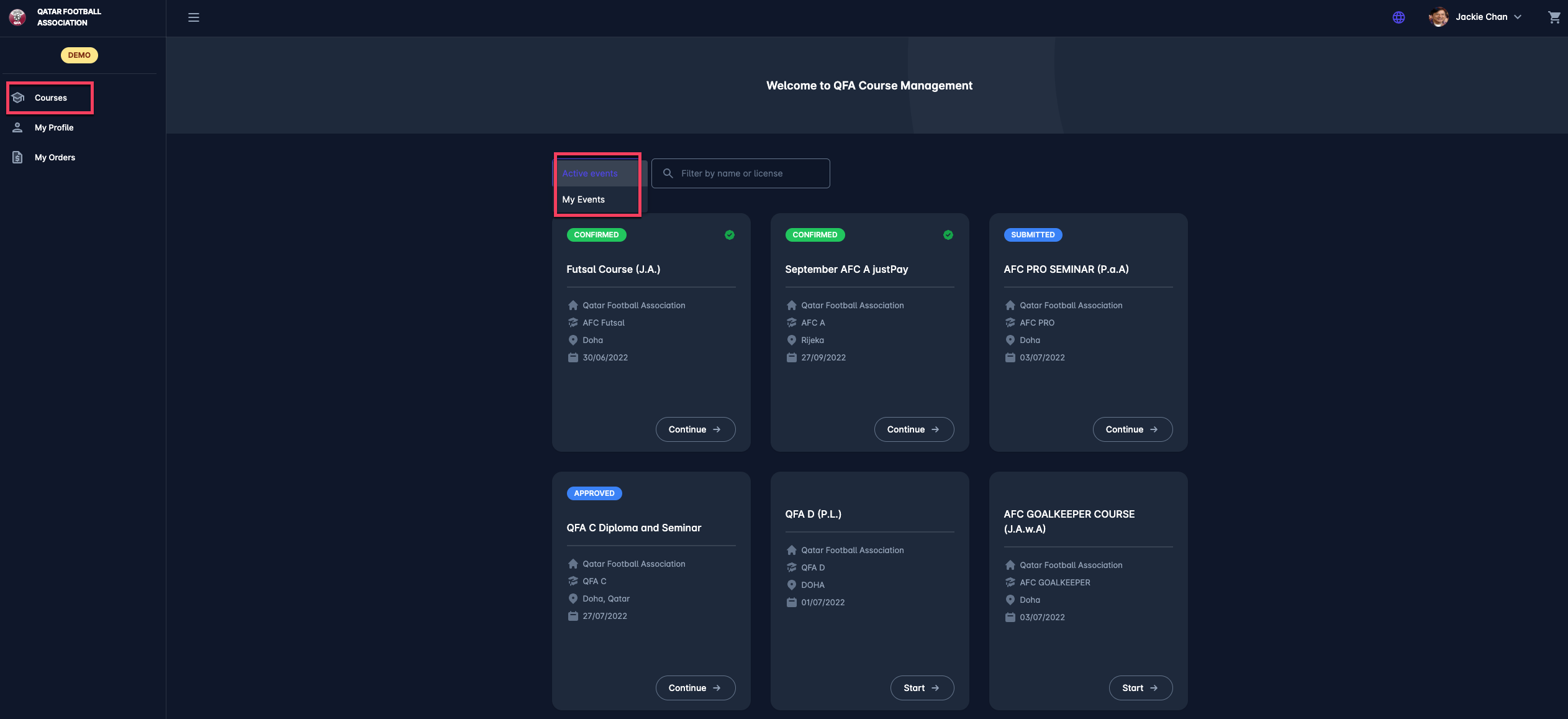 Events tab - contains information about all the events that you have enrolled in (regardless of the applicant’s status/phase)