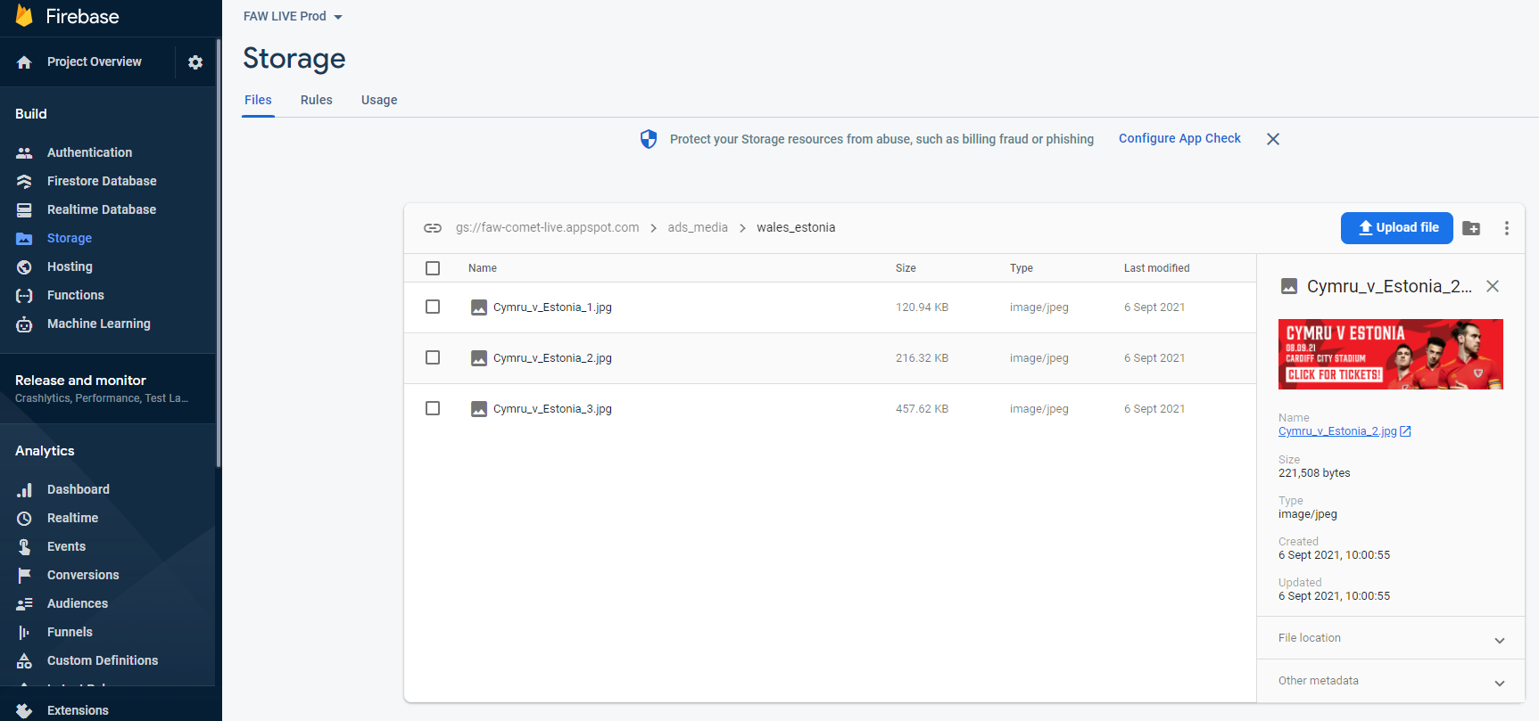 The setup is done on the Firebase Console using credentials provided by the Analyticom team during configuration and setup of the COMET LIVE apps. using the following steps: