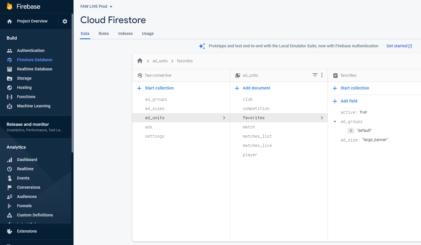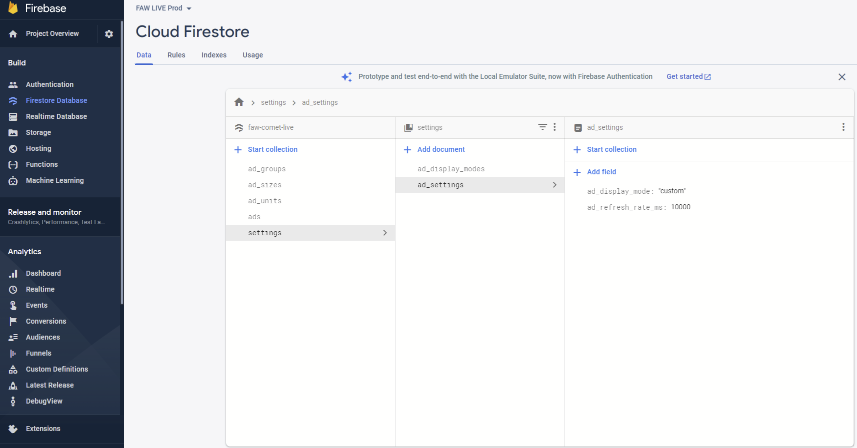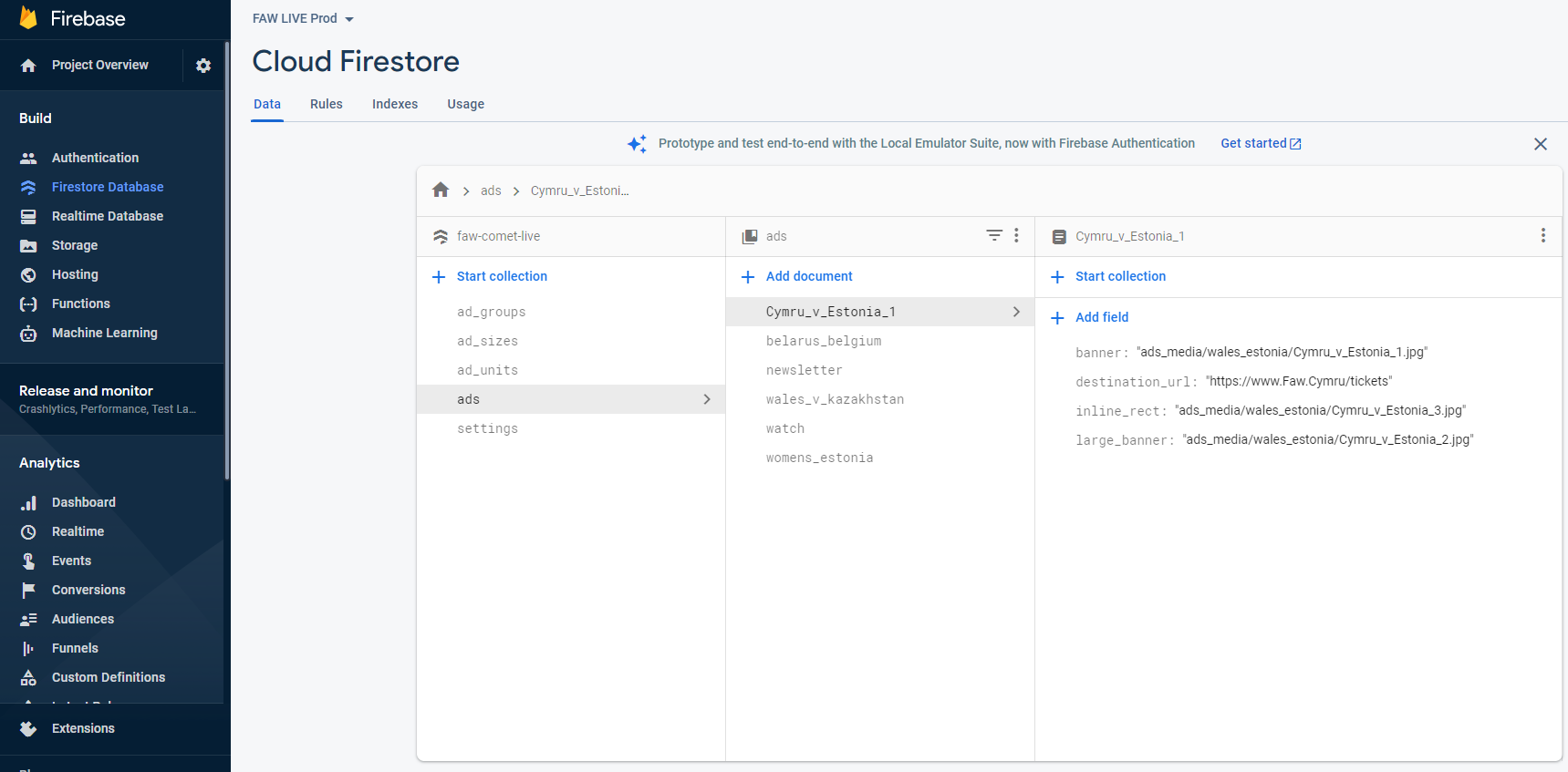 STEP #2 - Define the ads under the menu Build->Firestore Database. First create a document in the collection ads and then complete the following string fields: