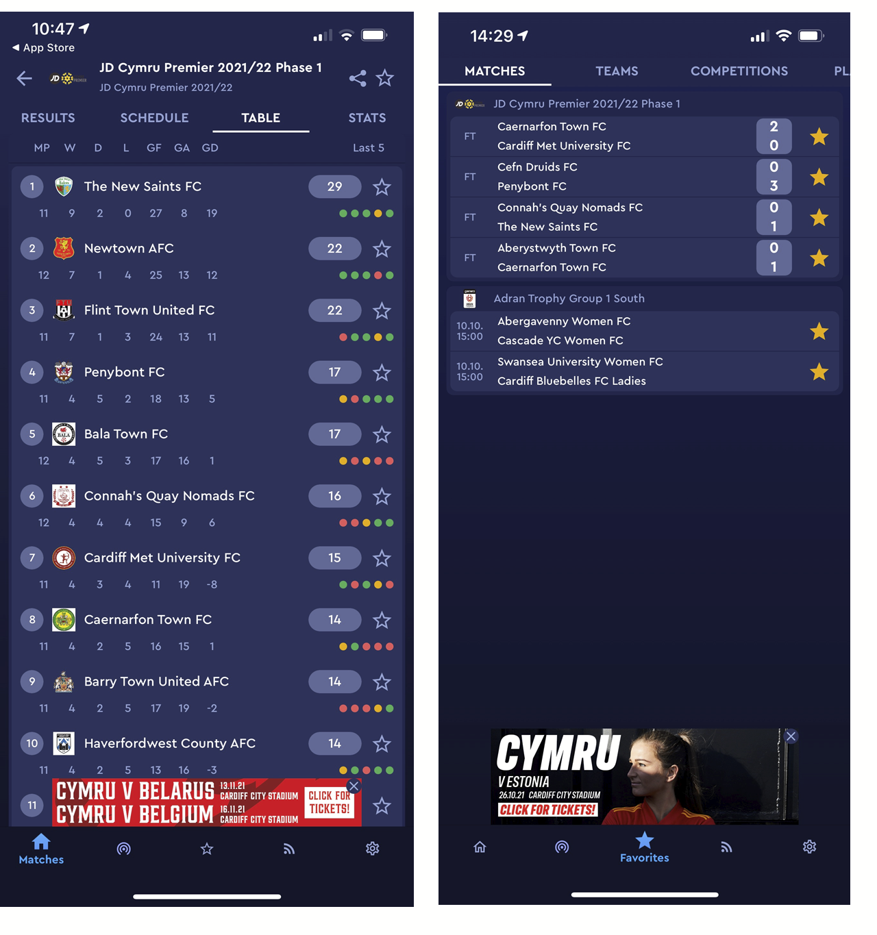 matches_live – live matches screen, matches played at this moment