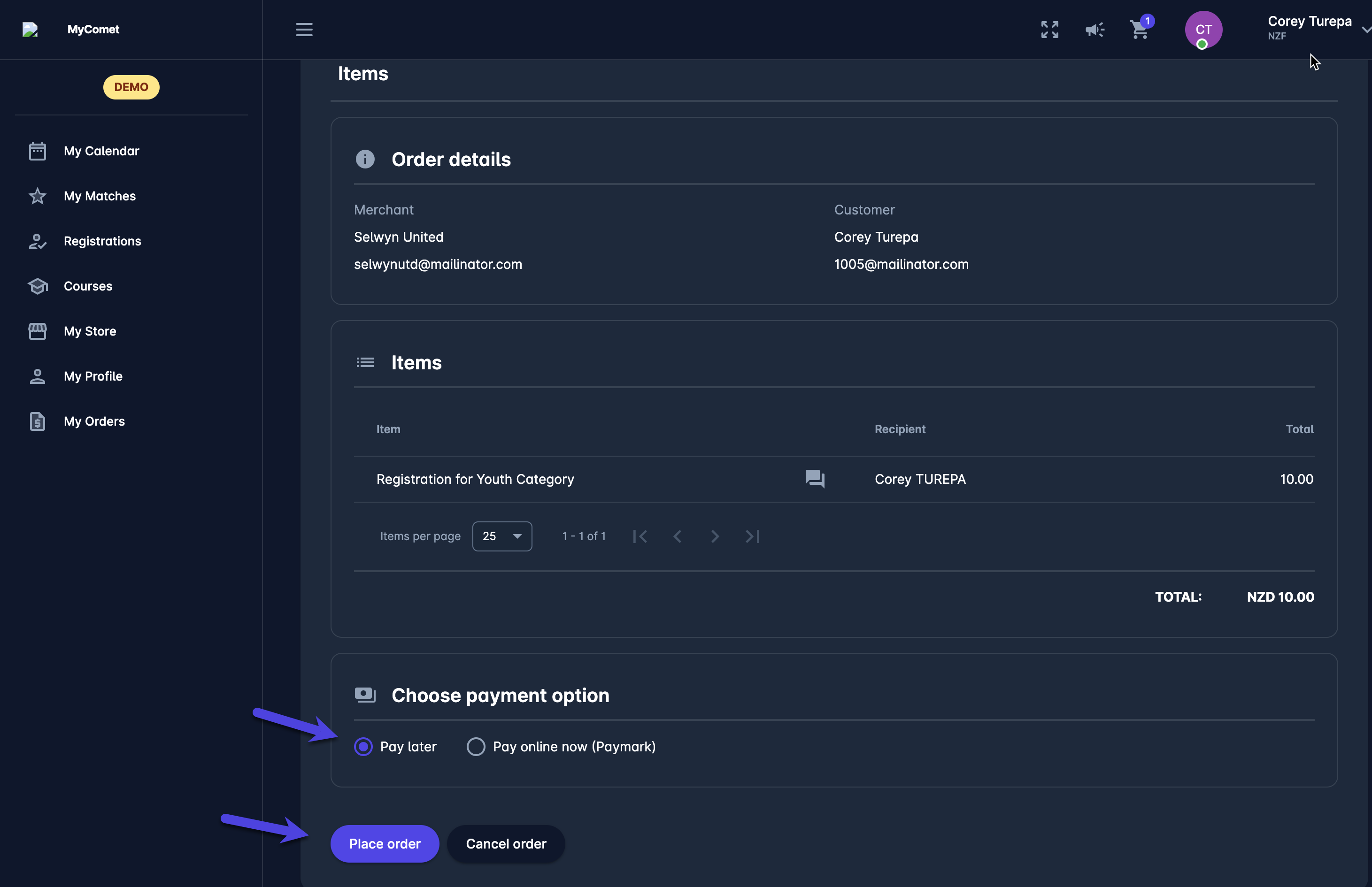 In case you have selected manual (Pay Later) as the payment type you will receive a message that the order has been placed but the payment has to be confirmed by Admin manually as an official confirmation that the organization has received the manual payment.