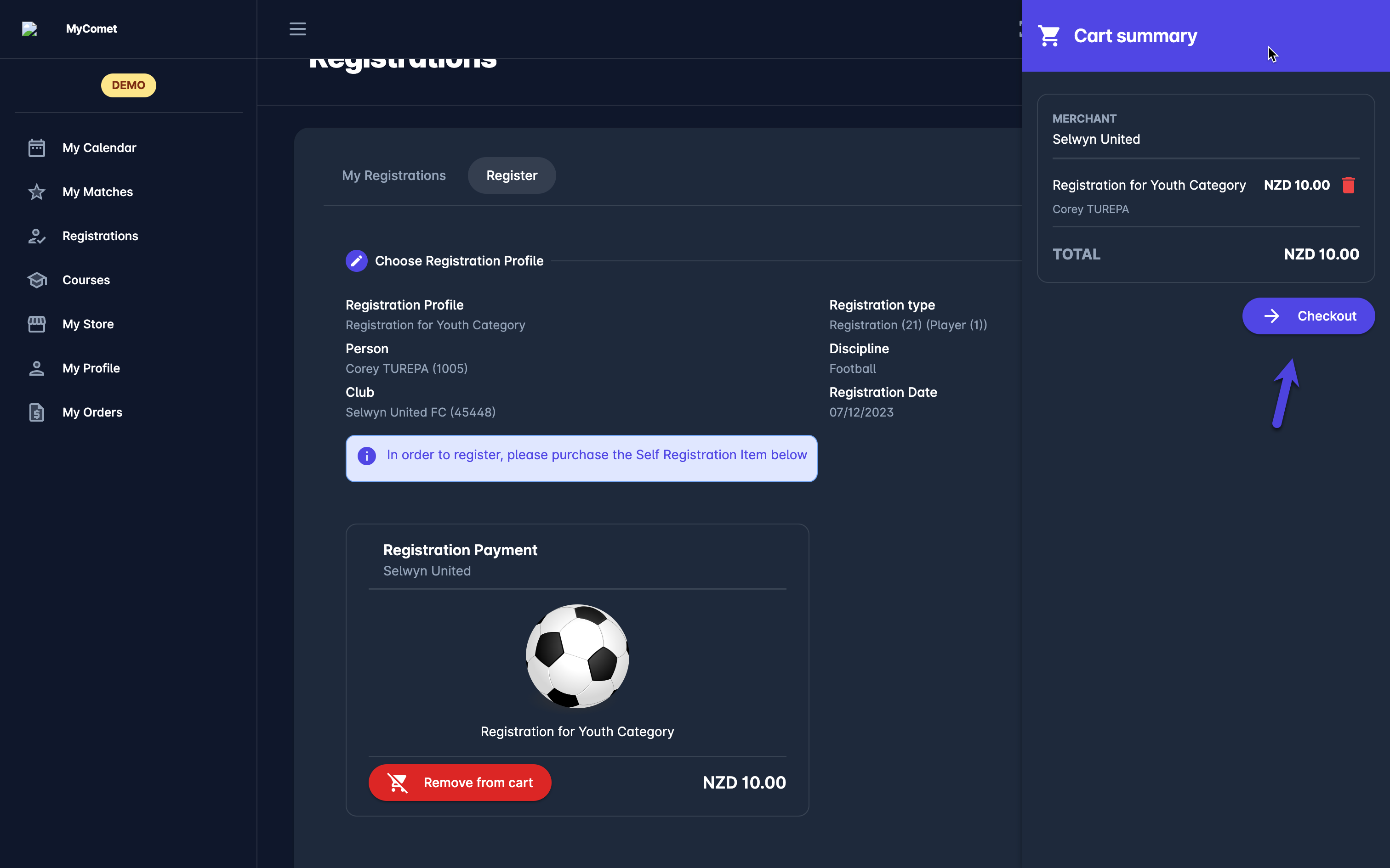 Review the cart items (hit the bin con button to remove the item if necessary)