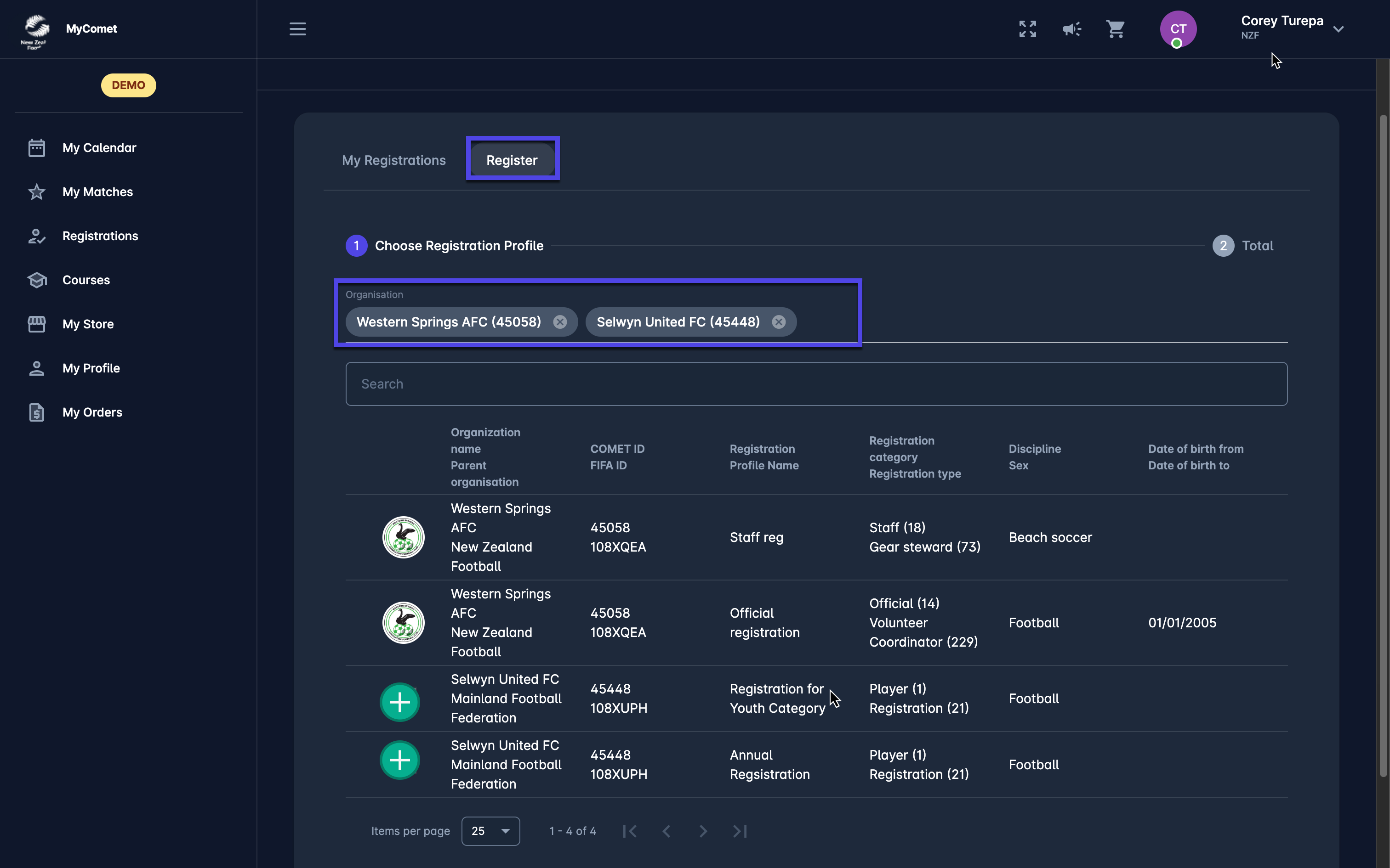 As a COMET User entitled to a self-registration process (player, coach, or official) you can access active Registration Profiles from the Registration Menu.