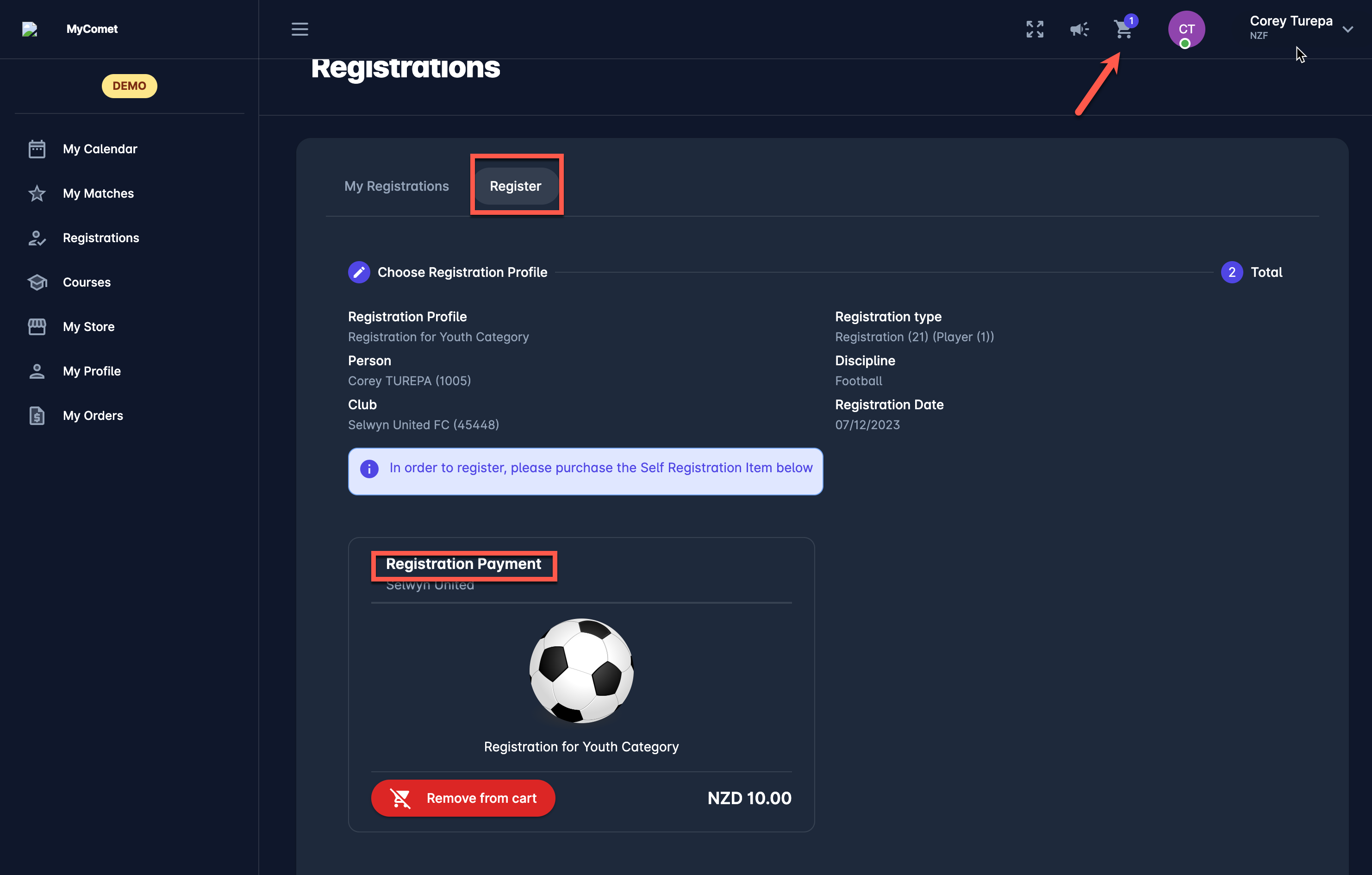 To complete the registration access the Cart and complete the purchase