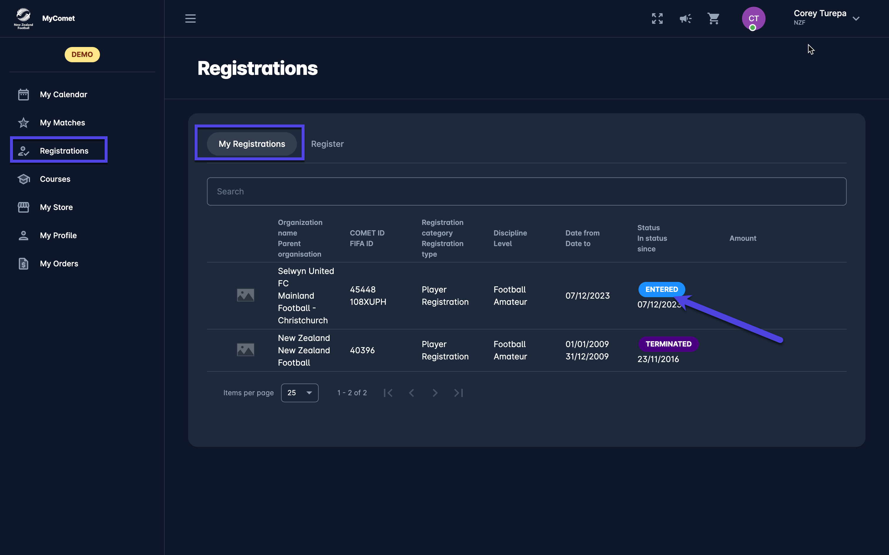 My Registrations Tab