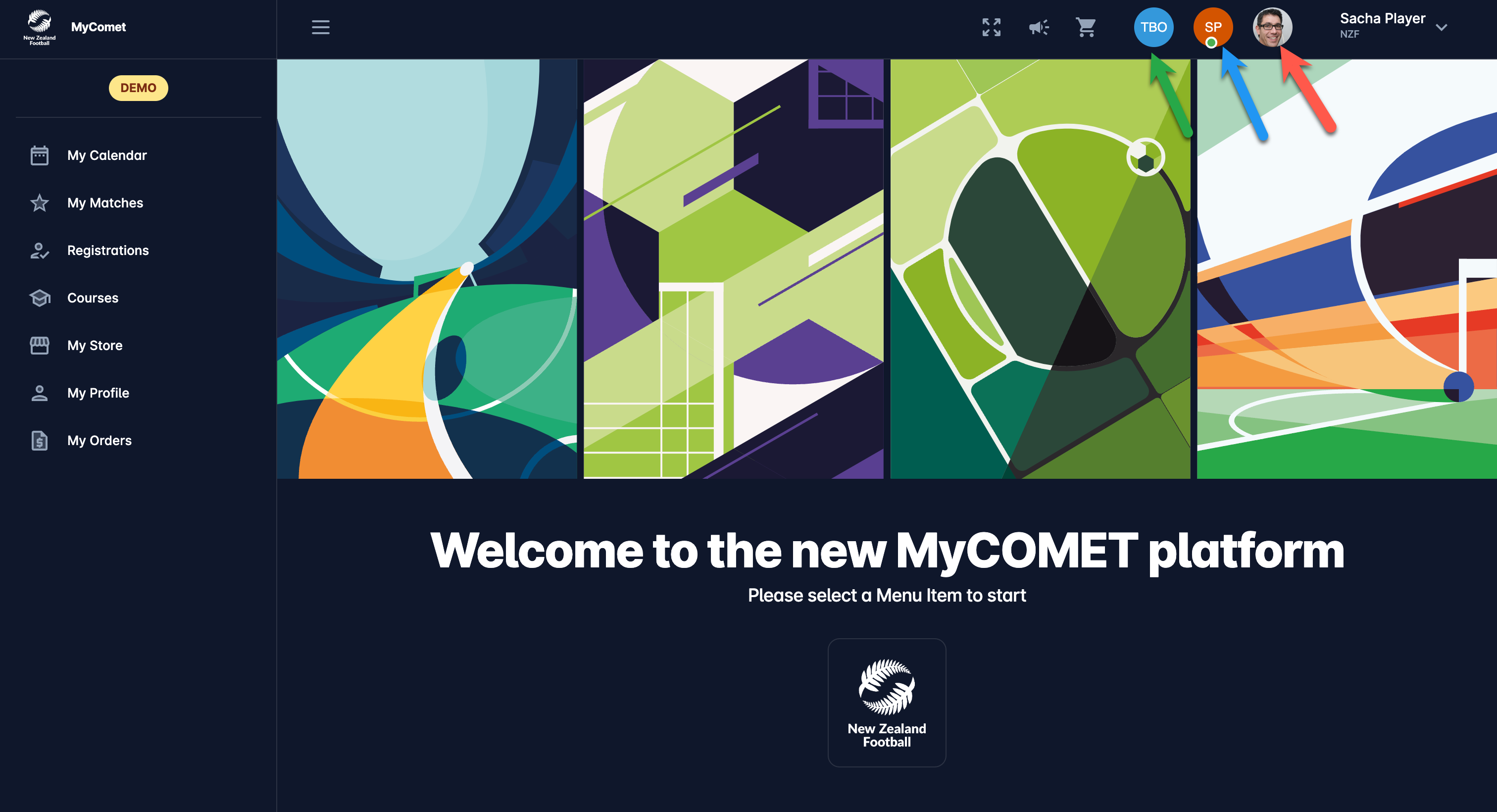 Access the Member Switch Icons in the upper right corner of the COMET Play Toolbar